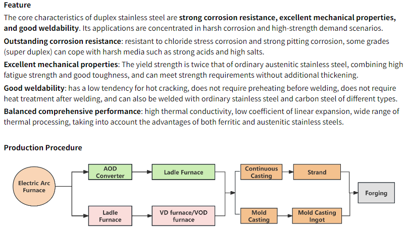 Dual phase stainless steel refers to stainless steel with ferrite and austenite each accounting for about 50%, and generally with a minimum content of 30% for the lower phase.